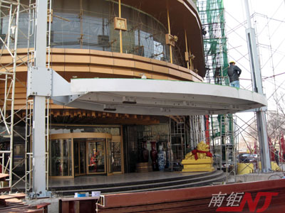 此設(shè)備乃我公司為天津劉老根大舞臺(tái)設(shè)計(jì)的戶外表演舞臺(tái),利用油缸和鏈條的完美結(jié)合,使升降過(guò)程流暢,制動(dòng)平穩(wěn)。臺(tái)面大,形狀特殊載荷大等特點(diǎn)!多地劉老根劇院的很多舞臺(tái)都是本公司所設(shè)計(jì)制造。圖為舞臺(tái)安裝過(guò)程